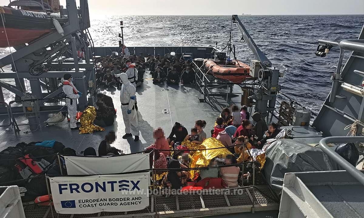 La ora 14.35, nava Poliției de Frontieră Române a detectat ținta ca fiind o navă de pescuit cu un număr ridicat de persoane la bord. În desfășurarea activității de salvare a fost trimisă și o navă a Gărzii de Coastă italiene.