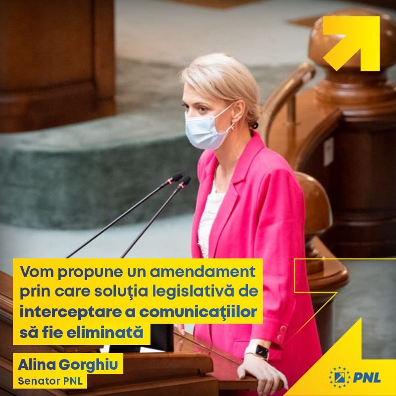 Alina Gorghiu, senator PNL: Vom propune un amendament la art. 10 indice 2, prin care soluția legislativă de interceptare a comunicațiilor să fie eliminată din Proiectul de lege