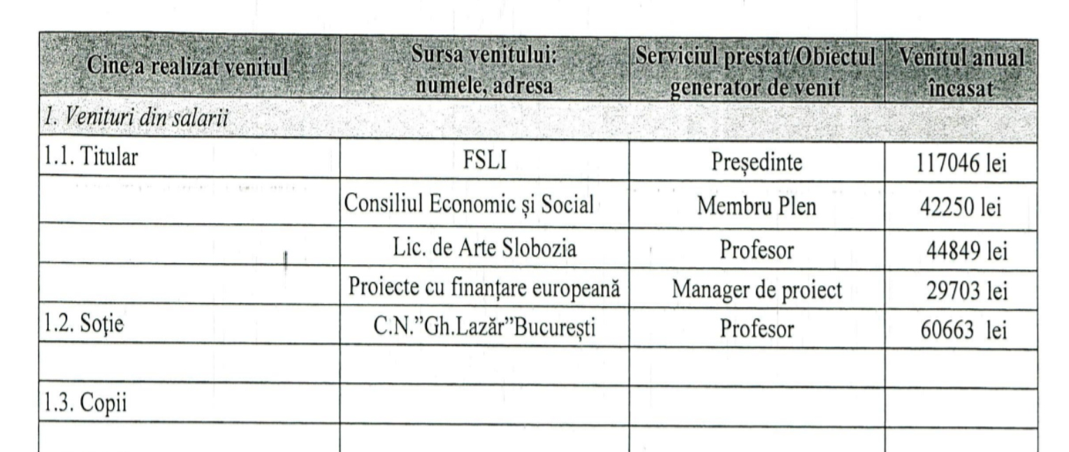 – 44.849 lei ca profesor la Liceul de Arte Slobozia (unde nu predă),