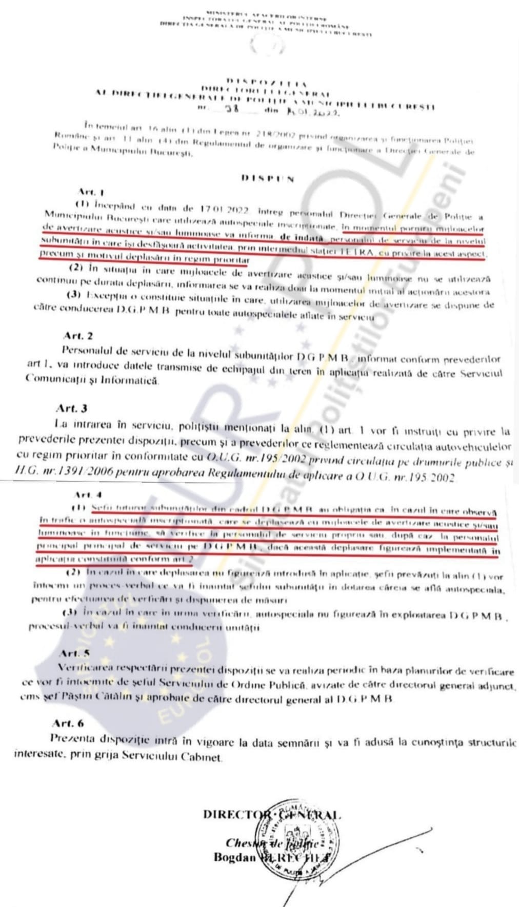 Dispoziție aberantă a șefului Poliției Capitalei
