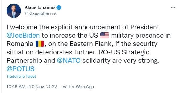 — Klaus Iohannis (@KlausIohannis) January 20, 2022