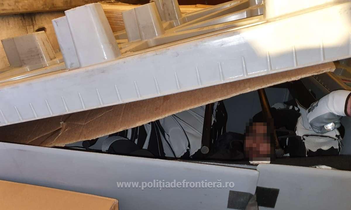 Astfel, în compartimentul pentru marfă, într-o cutie voluminoasă, printre bunurile transportate, a fost descoperit ascuns, un bărbat.
