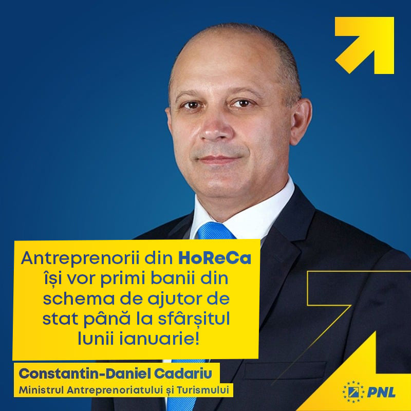 „O veste foarte bună pentru antreprenorii din sectorul HoReCa, care au aplicat cu succes pentru schema de ajutor de stat dedicată lor, este că sumele au început să le fie virate în conturi! Banii au ajuns la băncile partenere și, până la sfârșitul acestei luni, toți beneficiarii vor fi plătiți! Este vorba de a doua prorată în valoare de peste 1,2 miliarde de lei, care închide, astfel, programul”, a declarat Constantin-Daniel Cadariu, ministrul antreprenoriatului și turismului.