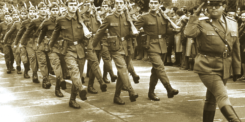 Defilare a militarilor in uniforma armatei RSR.