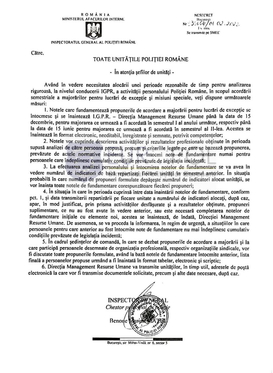 Conducerea IGPR nemulțumită de acordarea majorării pentru lucrări de excepție