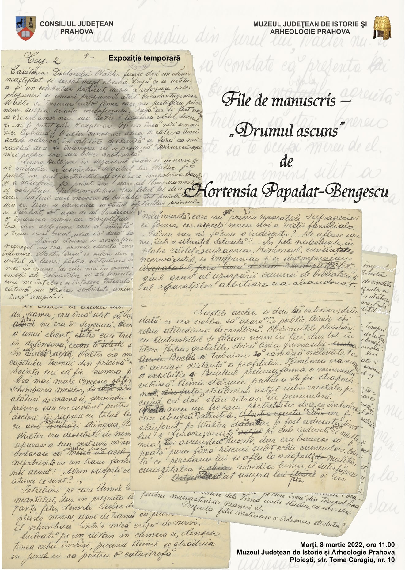 Muzeul Judeţean de Istorie şi Arheologie Prahova vă invită azi, 8 martie 2022, ora 11.00, la sediul său din Ploieşti, str. Toma Caragiu, nr. 10, să participaţi la vernisajul expoziţiei temporare „𝑭𝒊𝒍𝒆 𝒅𝒆 𝒎𝒂𝒏𝒖𝒔𝒄𝒓𝒊𝒔 – «𝑫𝒓𝒖𝒎𝒖𝒍 𝒂𝒔𝒄𝒖𝒏𝒔» 𝒅𝒆 𝑯𝒐𝒓𝒕𝒆𝒏𝒔𝒊𝒂 𝑷𝒂𝒑𝒂𝒅𝒂𝒕 𝑩𝒆𝒏𝒈𝒆𝒔𝒄𝒖”.