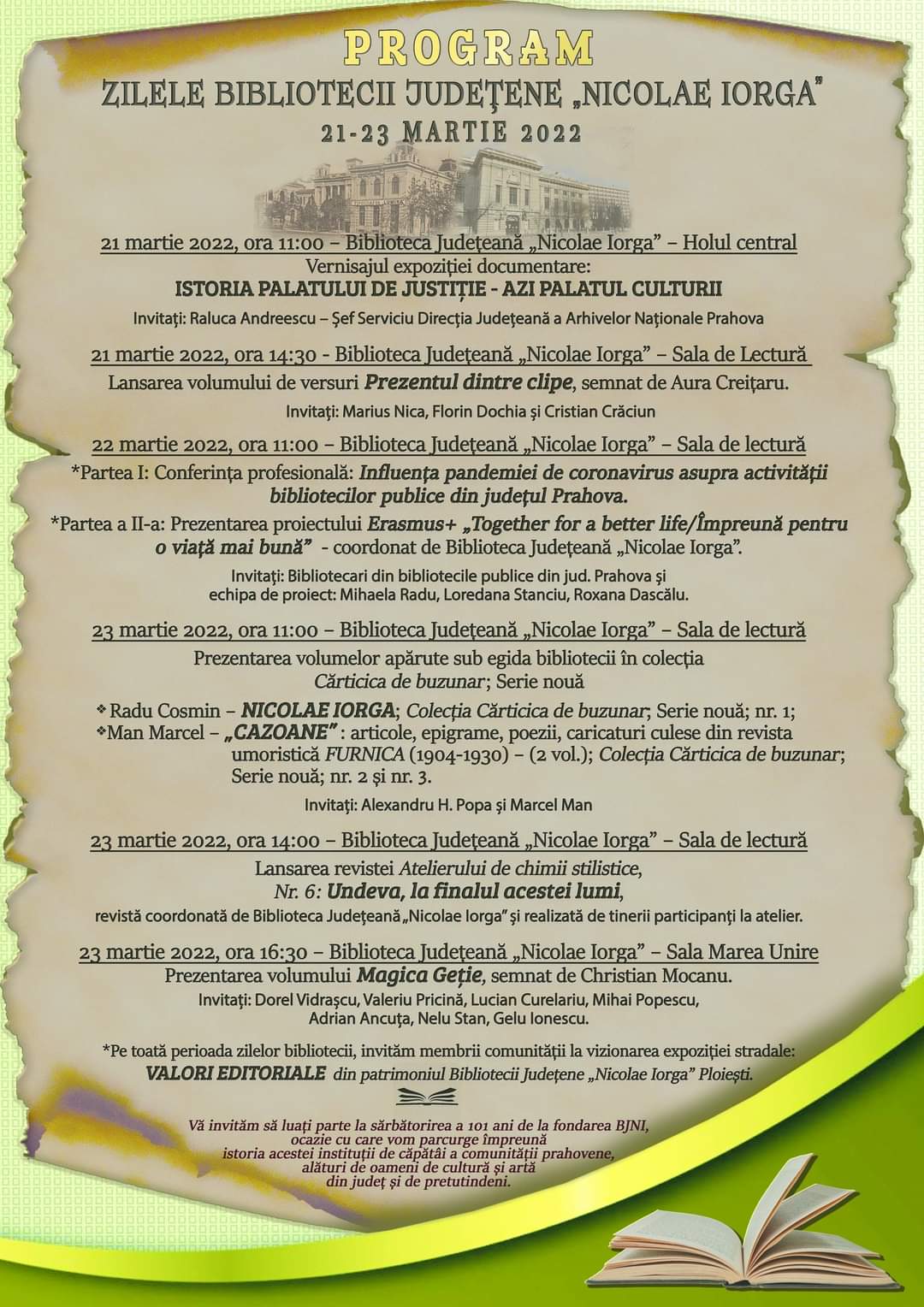 𝐙𝐈𝐋𝐄𝐋𝐄 𝐁𝐈𝐁𝐋𝐈𝐎𝐓𝐄𝐂𝐈𝐈 𝐉𝐔𝐃𝐄𝐓𝐄𝐍𝐄 ”𝐍𝐈𝐂𝐎𝐋𝐀𝐄 𝐈𝐎𝐑𝐆𝐀” 𝟐𝟏-𝟐𝟑 𝐌𝐀𝐑𝐓𝐈𝐄 𝟐𝟎𝟐𝟐