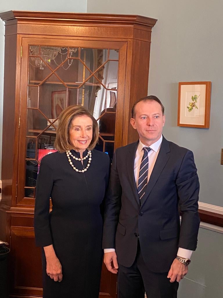 „Celebrăm 25 de ani de Parteneriat Strategic cu Statele Unite ale Americii. O discuție deschisă cu președintele Camerei Reprezentanților, Nancy Pelosi, despre importanța României în alianța transatlantică, despre includerea României în programul Visa Waiver și dezvoltarea capabilităților forțelor armate române.