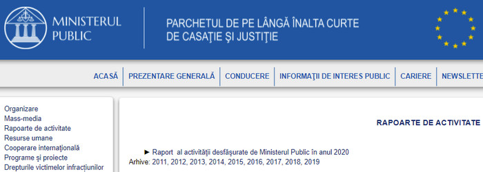 Spre deosebire de DNA si DIICOT, PICCJ-ul lui Scutea nu se grabeste sa publice raportul de activitate pe anul trecut. Asta daca exista acest raport. Sigur este cel putin ca el nu figureaza pe site-ul Ministerului Public, la sectiunea “Rapoarte de activitate” (vezi facsimil). Putem vedea de acolo rezultatele PICCJ pe 2020, 2019 si ceilalti ani, dar nu si pe cele de pe 2021, dezvaluie Lumea Justitiei. Ce oare vrea sa ascunda semnatara de protocol? (Irinel I.).