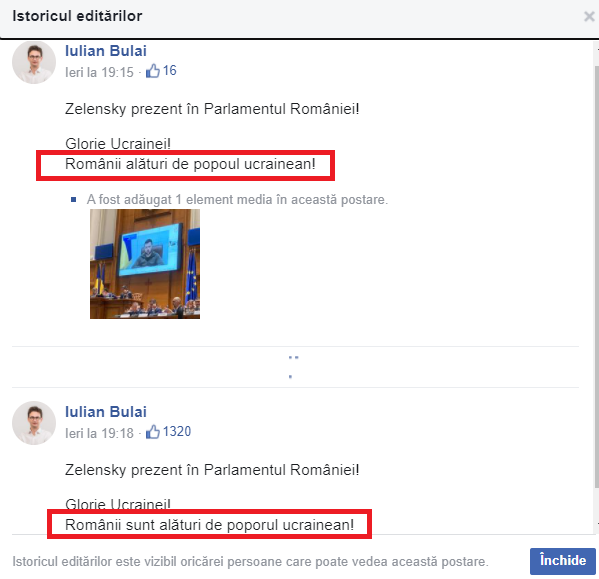 Bineinteles ca si-a dat repede seama de gafa si a scris „poporul”, dar nu stergand postarea initiala, ci doar modificand-o. Or, partea proasta este ca Facebook afiseaza istoricul editarilor, iar Iulian Bulai a ramas de bafta. Asta e – patasti, dezvaluie Lumea Justitiei. (Irinel I.).