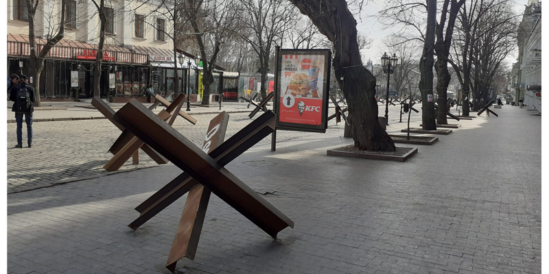 Odesa nu crede în lacrimi! Odesa trăieşte într-un ritm al ei dat de valurile mării şi istoria cosmopolită. Strada istorică Deribasîskaia este înţesată cu arici metalici, construiţi la şantierul naval, din „I”-uri şi traverse metalice.