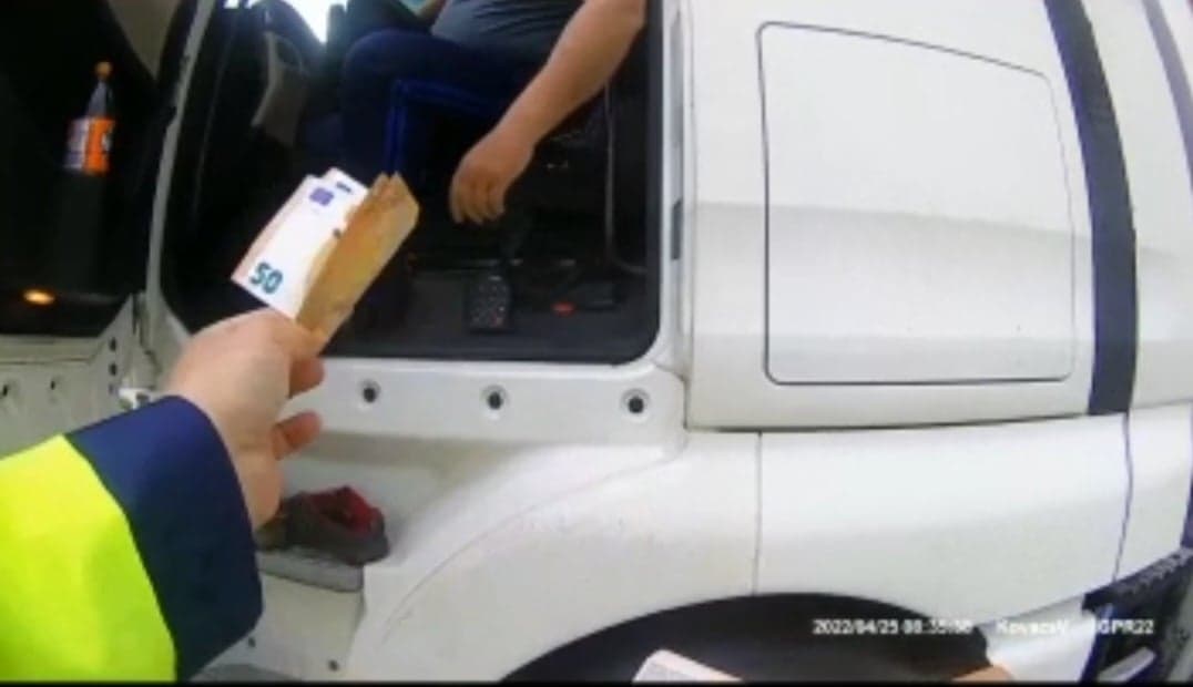 Sofer bulgar imobilizat pe autostrada A1, dupa ce a incercat sa-l mituiasca pe politistul Valer Kovacs cu 100 de euro/Spaga filmata cu body cam
