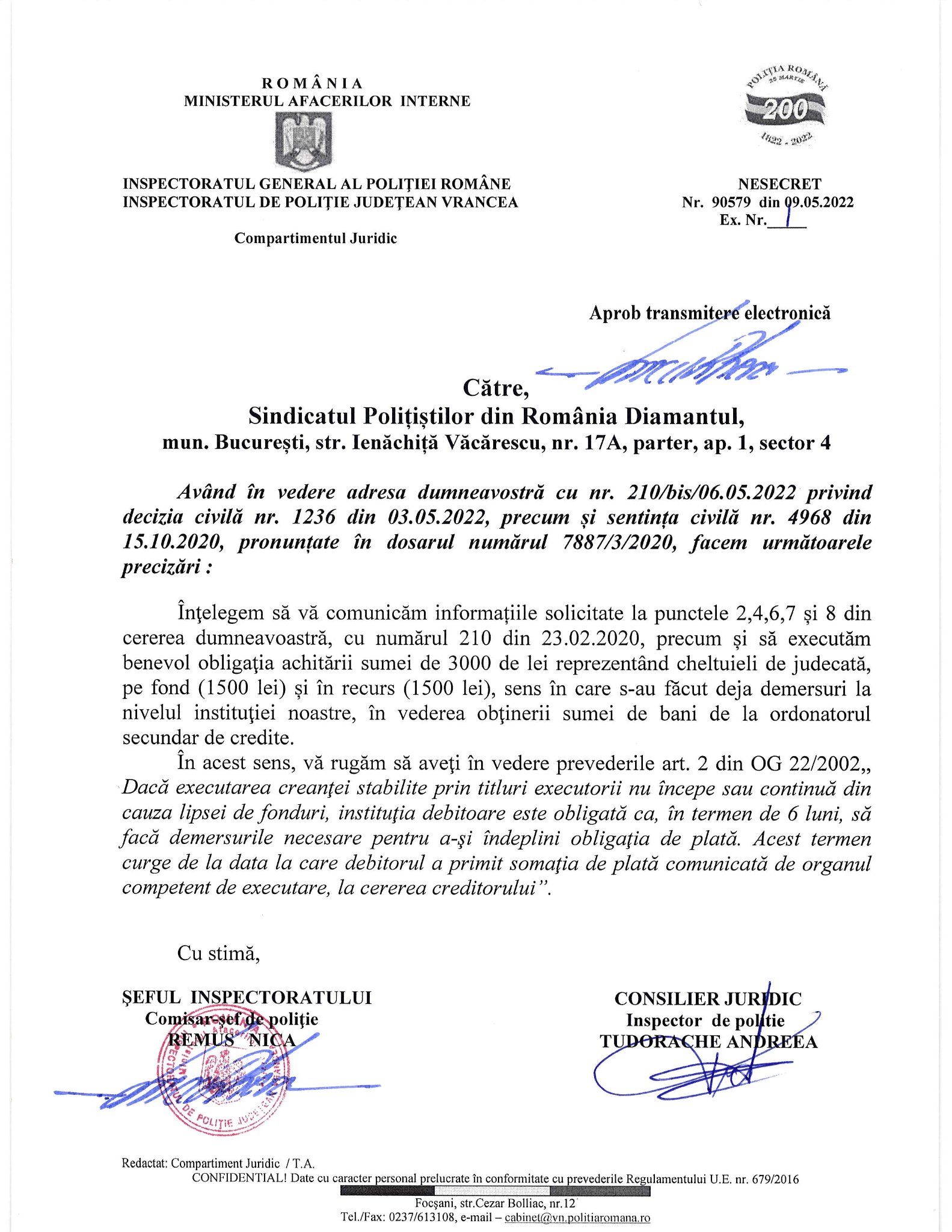 Sindicatul subliniază că polițiștii nu cer privilegii, ci doar respectul și condițiile minime pentru a-și putea face datoria față de cetățeni și față de România. (Cerasela N.).