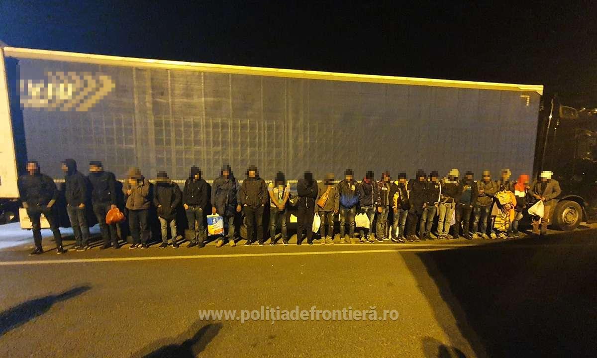 În baza analizei de risc, poliţiştii au efectuat un control amănunţit asupra mijlocului de transport. Astfel, au fost depistaţi, ascunși în compartimentul pentru marfă, douăzeci și trei de cetățeni străini.