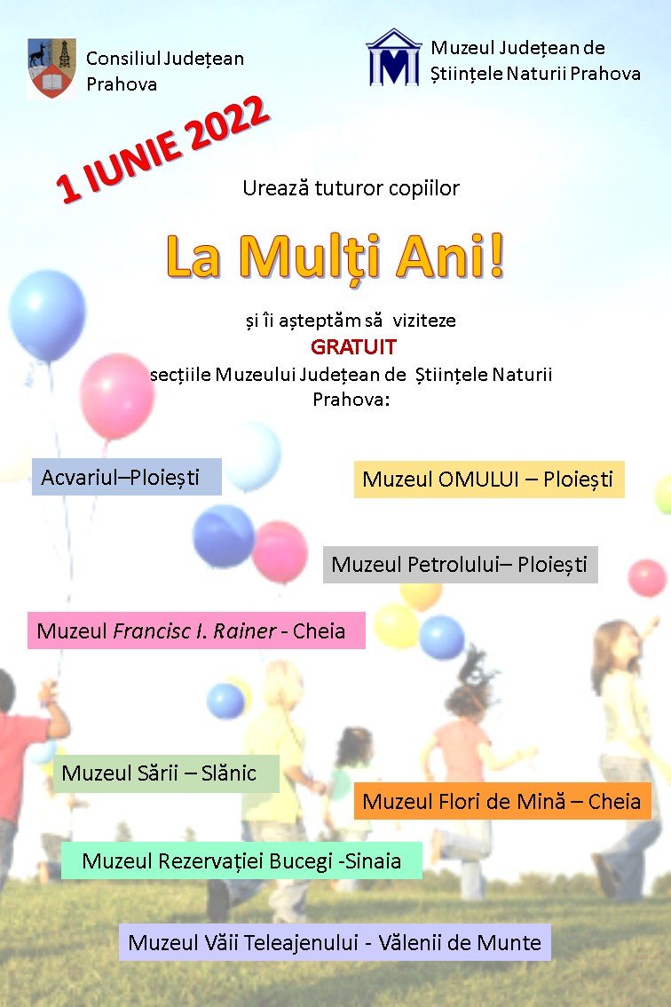 1 iunie 2022 – Toate secțiile Muzeului Județean de Științele Naturii Prahova, vor fi deschise pentru vizitare și oferim accesul gratuit tuturor copiilor!