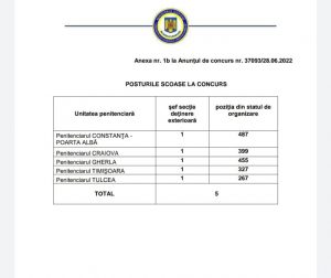 Concurs de ocupare a 48 posturi de conducere din cadrul sectorului siguranţa deţinerii şi regim penitenciar – şef secţie deţinere interioară/exterioară
