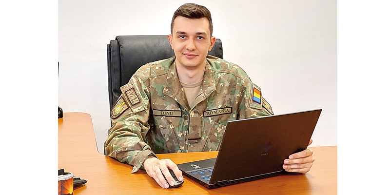 Sublocotenentul inginer Octavian Ștefan Dinu face parte din noua generație de ingineri ai CCI și este încadrat la Oficiul comunicații, tehnologia informației și apărare cibernetică, pe funcția de ofițer de stat major în biroul arhitecturi C4 ISR. Am absolvit Academia Tehnică Militară în 2020 și aici am încadrat prima funcție.