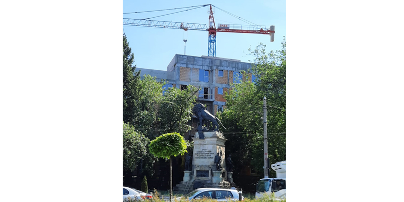 Cu gândul, probabil, la constituirea unui viitor ansamblu patrimonial, care ar putea fi numit Leul şi Monstrul, în zona de protecţie a monumentului a apărut un mastodont din beton care se ridică deasupra întregii panorame a zonei.