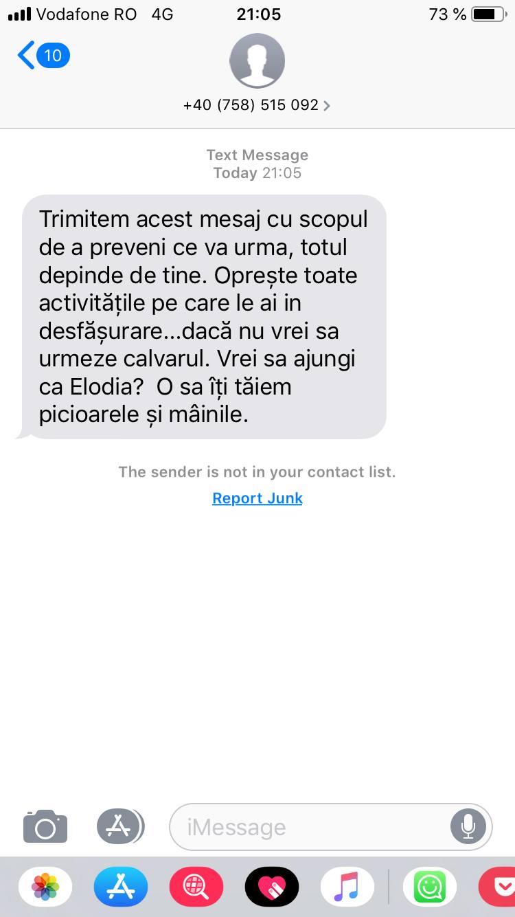 „Am spus că în ziua în care se va pronunța sentința definitivă în dosarul amenințării mele cu moartea din 2019, amenințare primită după ce am scris despre plagiatul rectorului de atunci de la Academia de Poliție, dar și despre impostura generalizată din acea instituție, voi face public conținutul mesajului primit pe 15 aprilie 2019.
