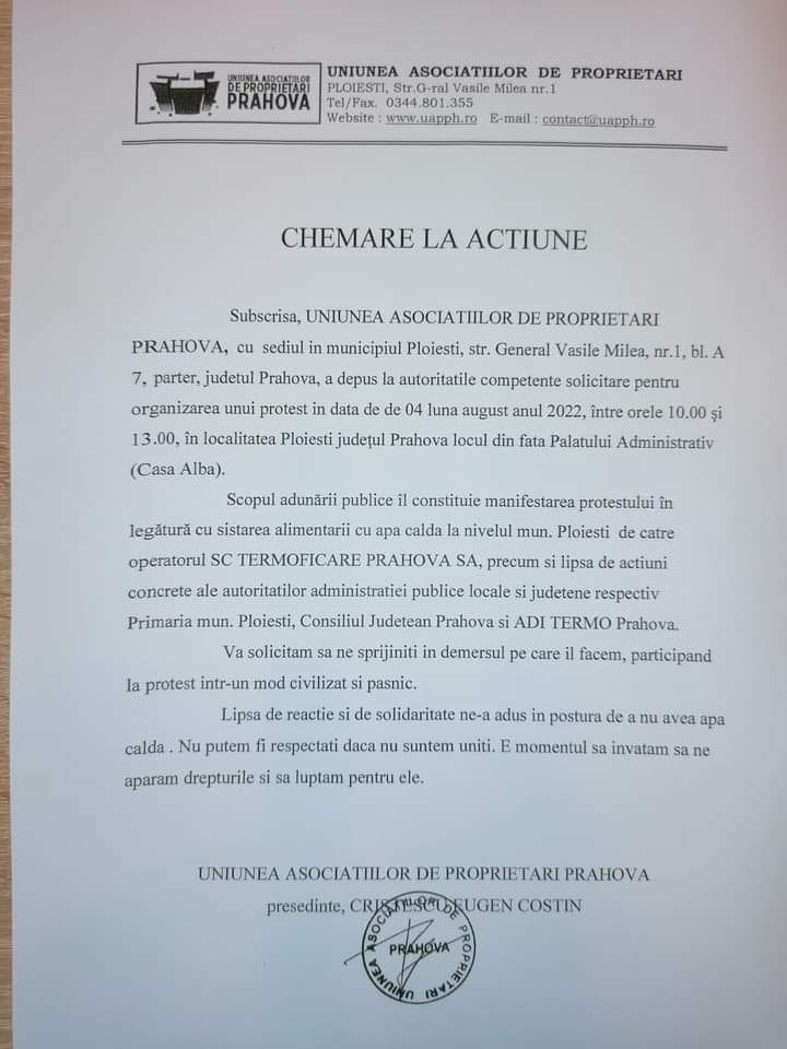 Dupa comunicatul UAP Prahova prin care se spune ca „noi ne pregatim sa protestam daca pana joi nu rezolvati problema apei calde”, au inceput sa apara politruci, nu numai politici,  care se aliaza acestei miscari (unul pentru procente, altul pentru a ascunde alte bube, altii din interese obscure si de aparare al edilului).