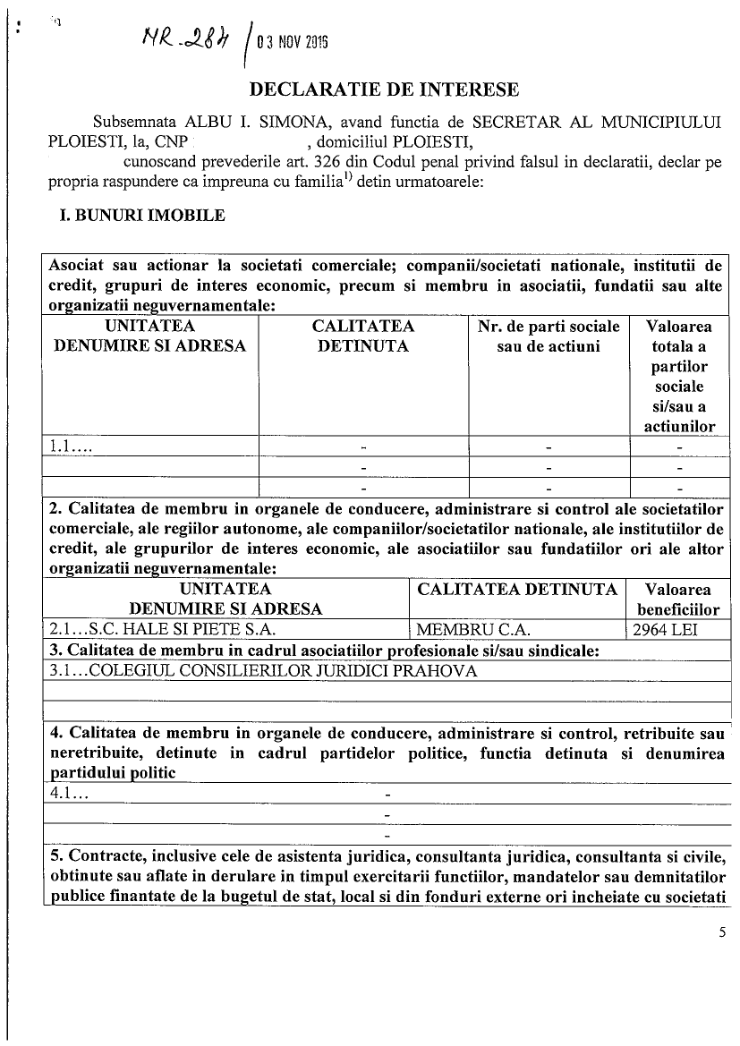Din declaratia nasei edilului reiese ca sotul sau era un simplu sef de birou si un „cartofor”, in aceea perioada si acum conduce Politia Locala Ploiesti.