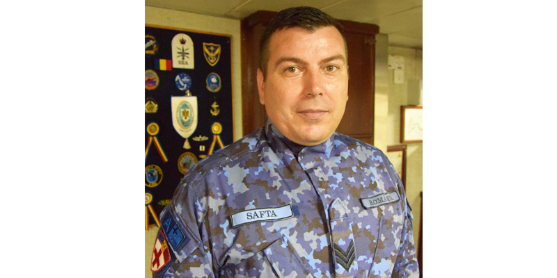 Este la bordul F-221 din 2011. Noi, sanitarii trebuie să ajungem rapid la locul incidentului, la orice oră din zi sau noapte, spune caporalul clasa a II-a Safta. Acţionăm strâns cu membrii echipajului la orice exerciţiu.