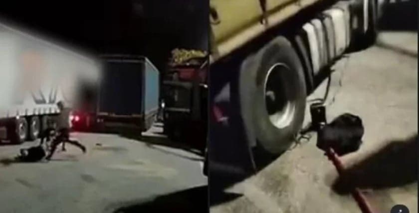Conform Infostiri.ro,, scandalul a pornit joi, la miezul nopţii, în parcarea unei benzinării, în apropiere de capitala Sloveniei, Ljubljana. Şoferul de TIR, originar din Maramureş, s-a trezit pentru a mânca. Atunci a tras perdeaua de la geamul cabinei şi a rămas blocat pentru câteva secunde. Un alt camion, cu numere de Argeş, era tras în faţa sa, iar un furtun îl conecta pe acesta de TIR-ul său.
