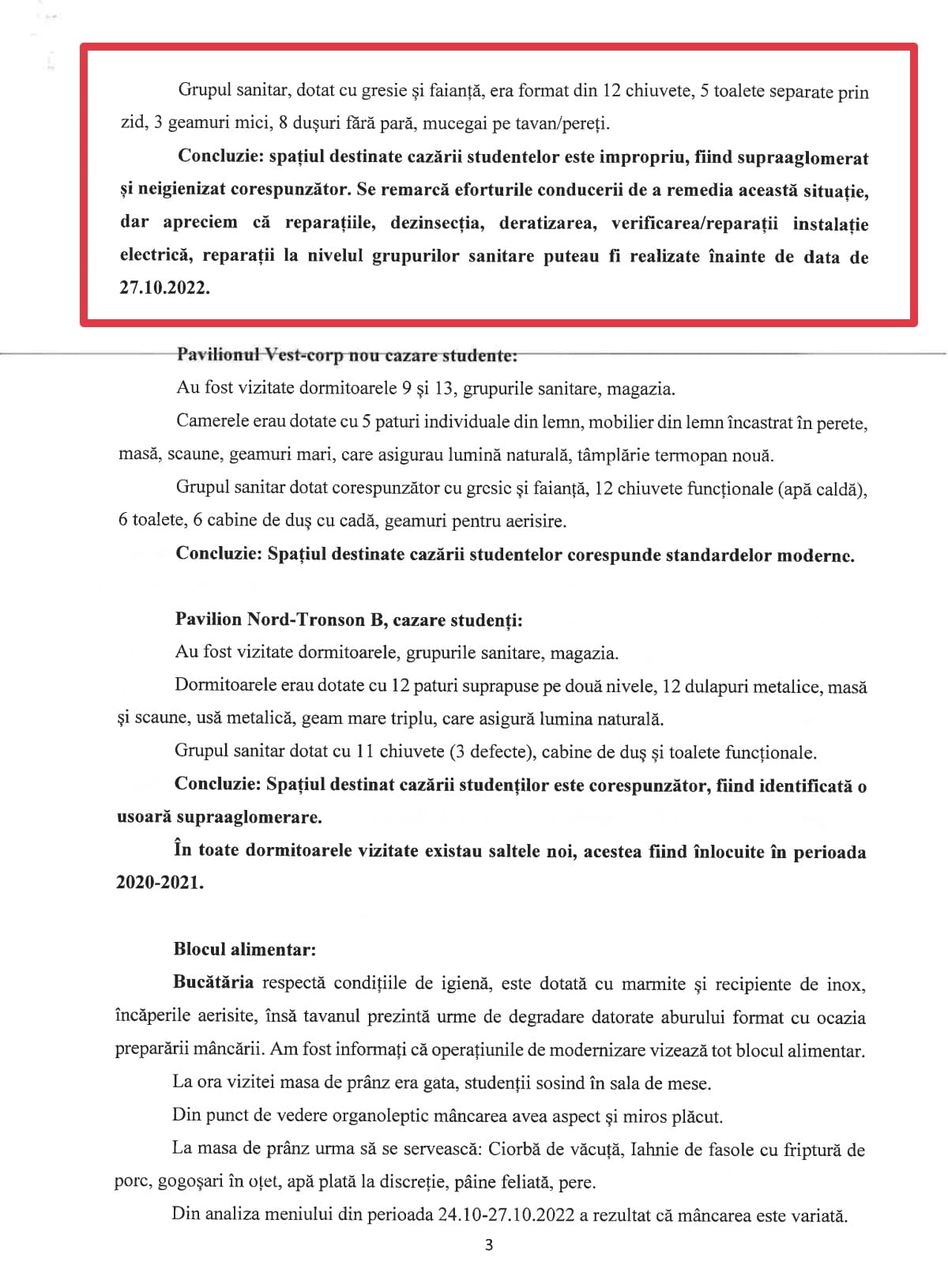 Constatând că la nivelul conducerii acestei instituții nu au existat reacții și nici măcar o deschidere față de dialogul social, am sesizat ISU București pentru a dispune măsuri de evaluare a riscului de incendiu și scenariile de securitate la incendiu în condițiile în care studenții erau cazați câte 16 sau 30 în dormitoare cu paturi supraetajate și cu posibilitate redusă de evacuare în cazul producerii unui incendiu.