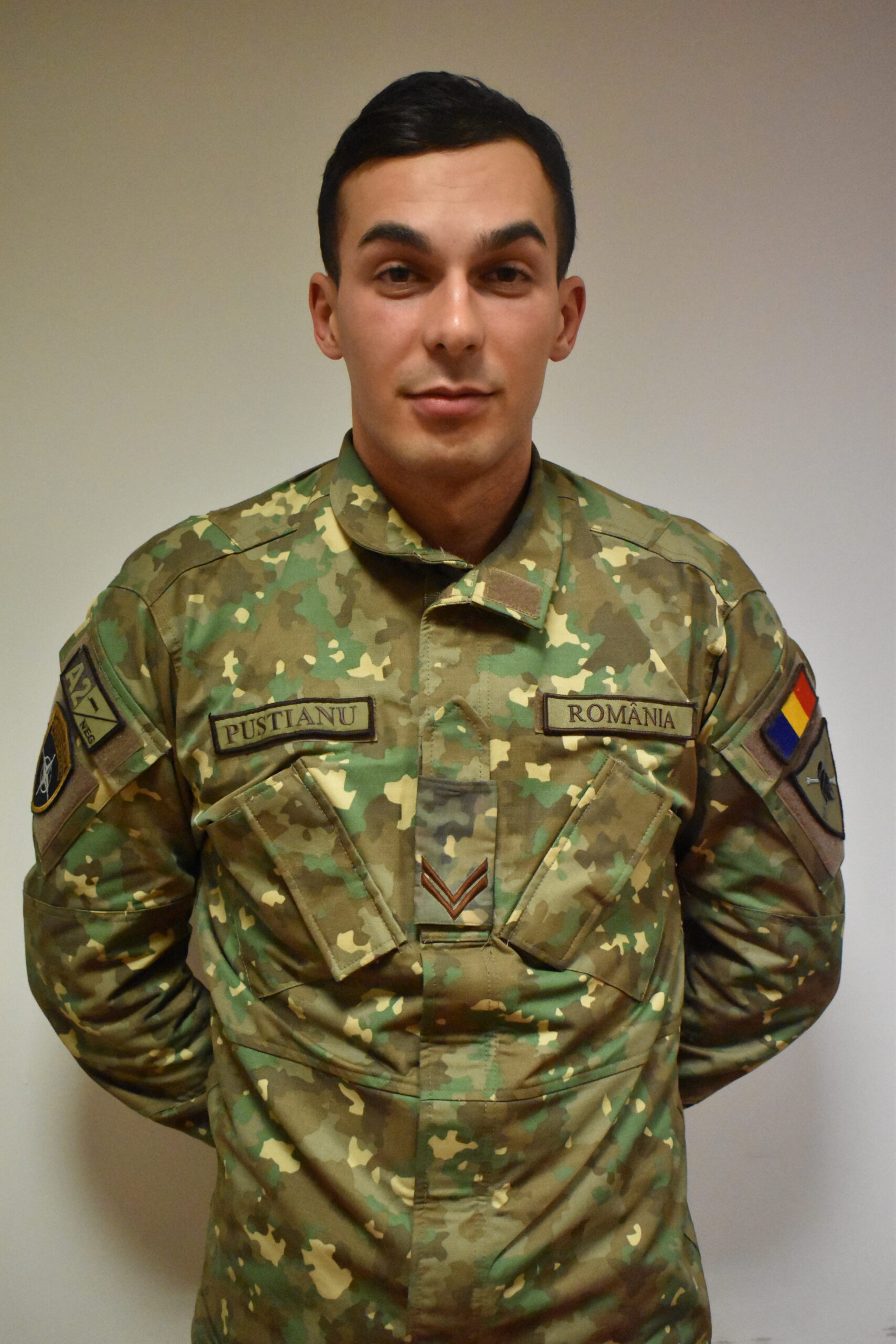 Caporalul Răzvan Gabriel Pustianu este, la bază, specialist tehnică de calcul și instalații periferice. În cadrul detașamentului, îndeplinește funcția de radiotelefonist al comandantului de baterie.