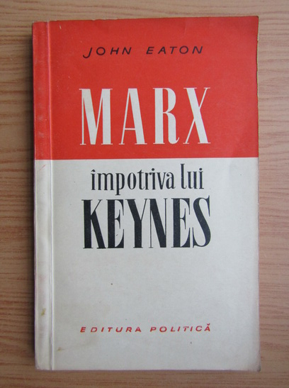 În 1959, apărea la București, la Editura Politică, traducerea lucrării “Marx împotriva lui Keynes” a economistului britanic John Eaton, scoasă în original la Londra în 1951, într-o perioadă de intens avânt și succes teoretic, dar și politic, al keynesianismului. Scopul principal al autorului este să critice și demonteze ideea că intervenționismul de stat în economie promovat de Keynes poate duce la îndeplinirea dezideratelor sociale ale socialismului păstrând totodată elementele-cheie ale capitalismului, adică proprietatea și inițiativa privată.