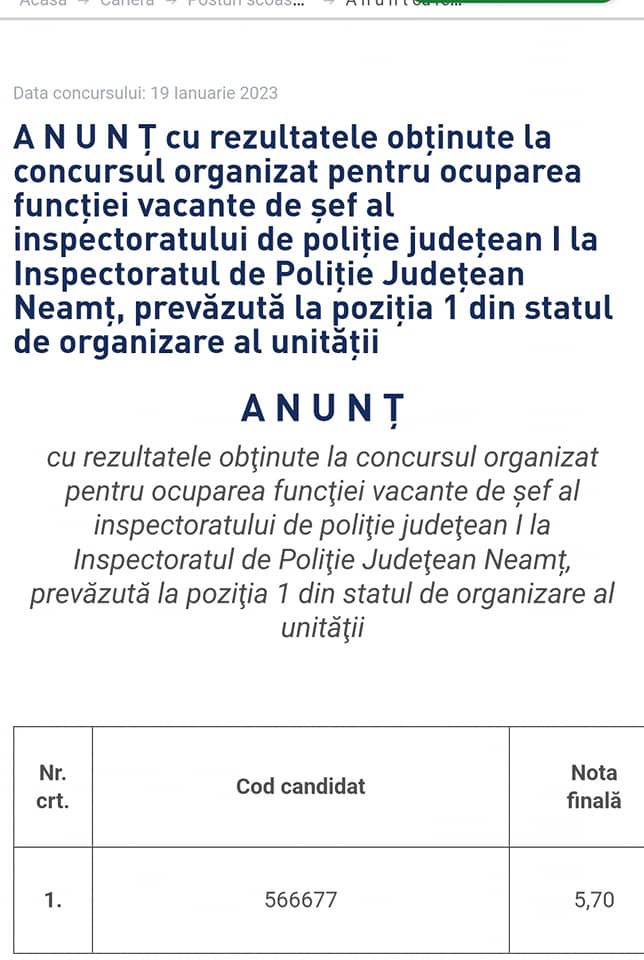 Incă șeful IPJ Neamț, comisarul șef de poliție Osoianu Mihai Iulian, a fost submediocru