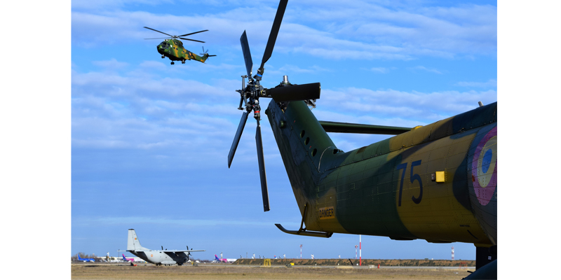 Aviatorii Escadrilei 903 Elicoptere din Baza 90 Transport Aerian Comandor aviator Gheorghe Bănciulescu se antrenează intens pentru misiunile ce urmează a fi executate anul acesta.