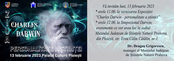 13 februarie 2023 – simpozionul științific Charles Darwin – dedicat împlinirii a 214 ani de la nașterea ilustrului naturalist