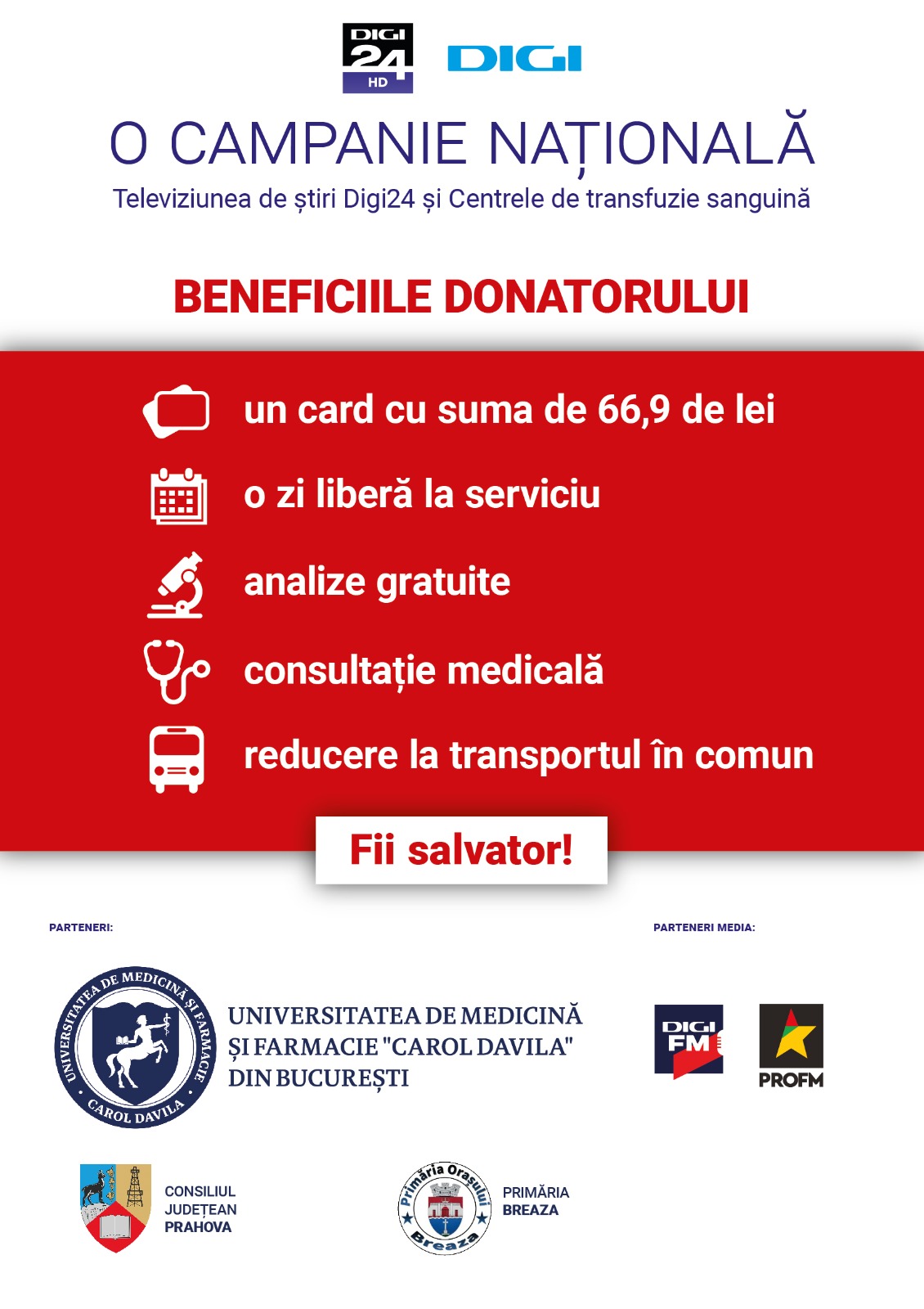 Acţiunea face parte din campania de mobilizare a tuturor celor care pot dona, derulată de Televiziunea de ştiri Digi24, în colaborare cu Centrul de Transfuzie Sanguină Ploieşti, Consiliul Județean Prahova şi Primăria Oraşului Breaza.
