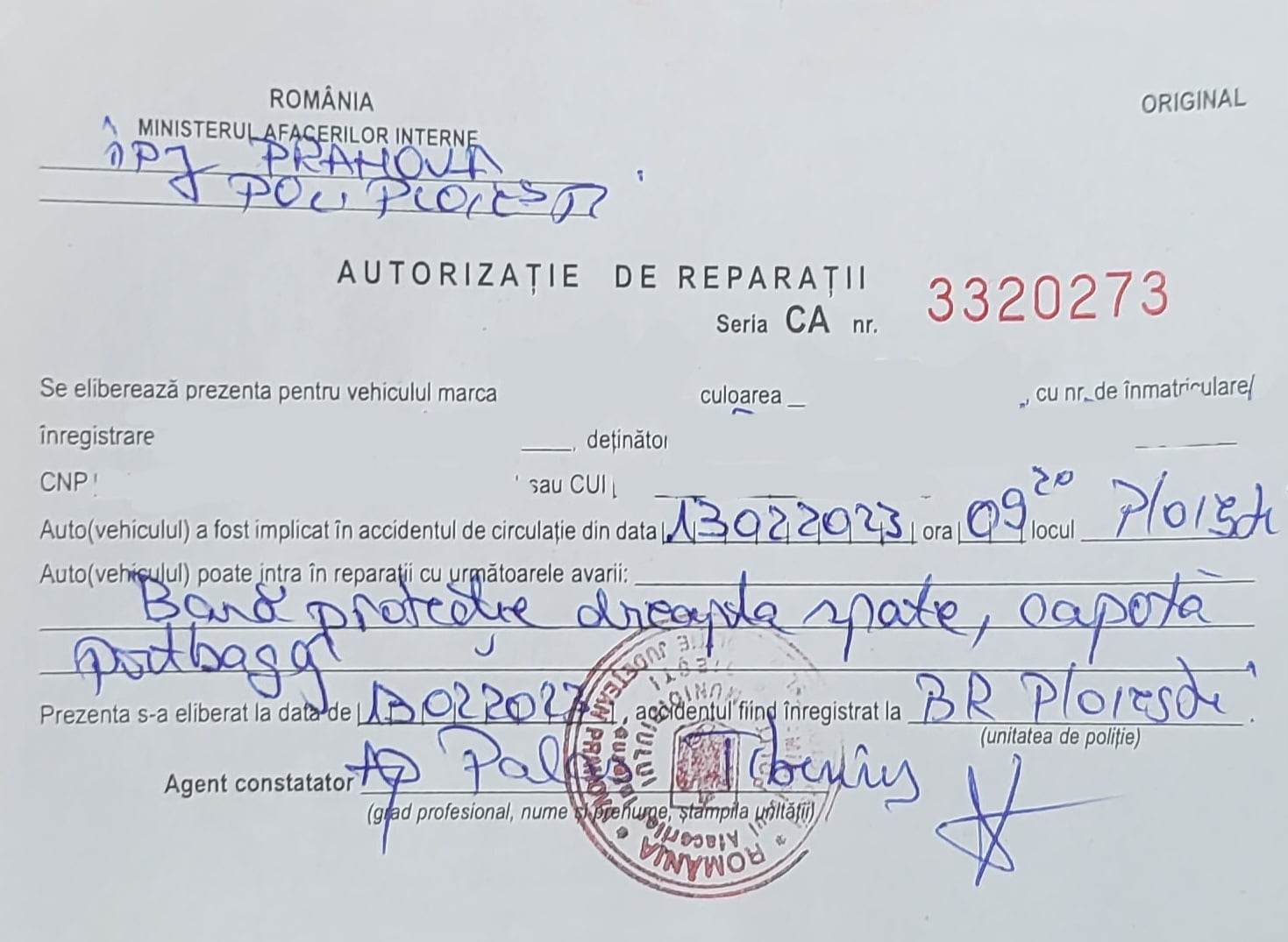 Umilirea si musamalizarea ordinara se poate vedea din avion, jurnalistul nostru realizand ca totul a fost o facatura ordinara in momentul in care, iesit cu scarba din aceasta institutie, a citit procesul-verbal seria PPHX 637070, prin care marele nostru si brav agent ca „organ” de nadejde ce face cinste IPJ-ului Prahova a specificat ca personajul care l-a accidentat pe reprezentantul nostru nu numai ca nu a ramas cu permisul suspendat, ci a primit doar AVERTISMENT si 3 puncte de penalizare. Deci, dragi interlopi, luati niste „janghine” de masini si treceti la accidentat incomozii! IPJ Prahova va protejeaza!