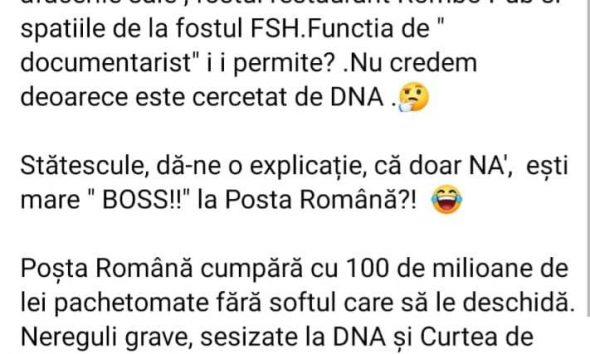 Nereguli grave la Poșta Română au fost sesizate la DNA și Curtea de Conturi de un avertizor de integritate. Printre acestea, o achiziție pregătită în baza unui raport al unui SRL proaspăt înființat prin care Poșta Română poate cumpăra cutii poștale digitale de 100 de milioane de lei fără softul de funcționare. O parte din … Continuă lectura „Documentaristul” Ciprian Gheorghe Stătescu si DISPARITIA unui SITE ARHEOLOGIC