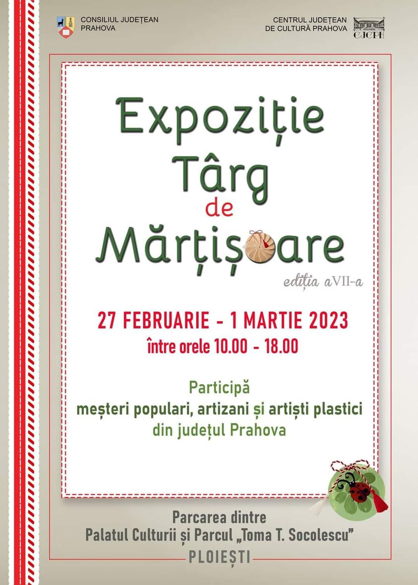 Anul acesta, optați să oferiți mărțișoare „made in Prahova”. Le veți găsi în perioada 27 februarie-1 martie 2023 la Targul de martisoare, in parcarea dintre Palatul Culturii si „Parcul Toma
