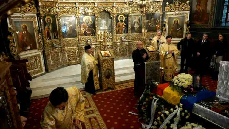 În acest moment, după ce mai întîi i s-a redus volumul microfonului, discursul lui Tom Șora a fost întrerupt de unul dintre preoți, care i-a spus să nu e momentul și locul potrivit: ”Nu aici, e slujba de înmormîntare”.