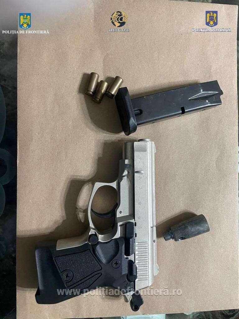 De asemenea, au fost identificate și ridicate, sumele de 86.300 euro, 25.630 lei și 3.005 dolari, 3 pistoale cu bile, o cantitate de substanță vegetală, mai multe telefoane mobile și înscrisuri.