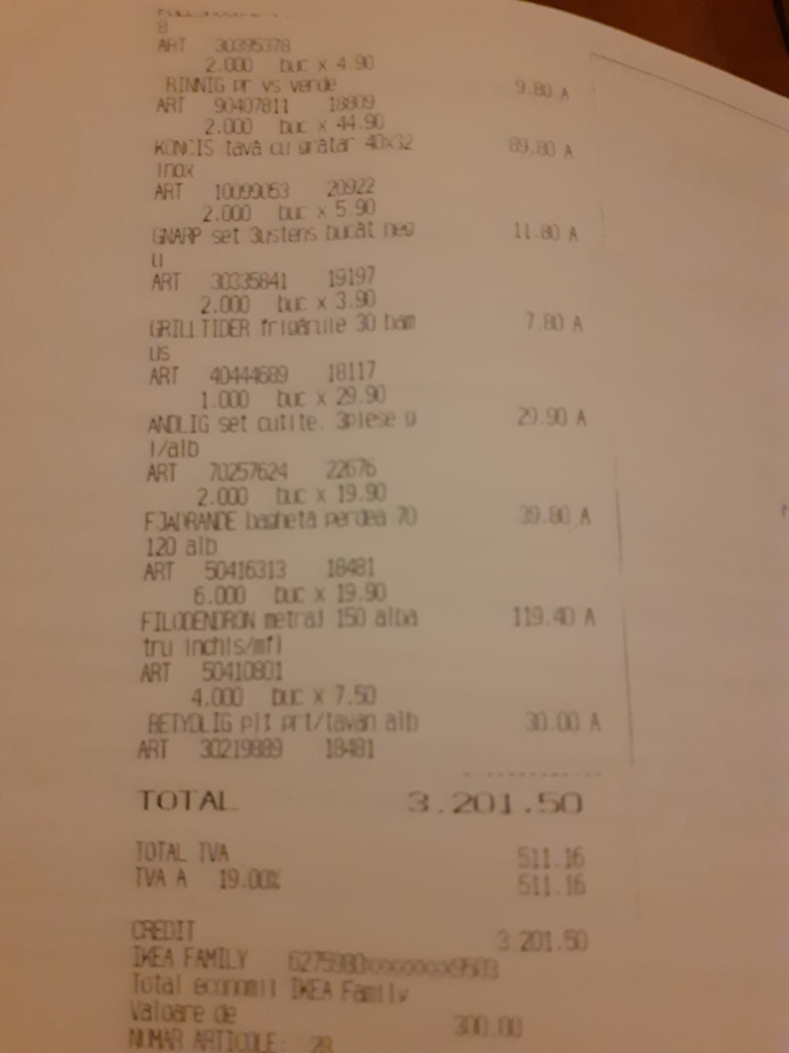 Documentele justificative au fost sustrase din biroul personal al gestionarului, în data de 23.03.2020, pentru a nu putea dovedi proveniența lor, dar se poate identifica că sunt inscripționate cu sigla IKEA,de altfel ca orice produs cumpărat de la IKEA.,,