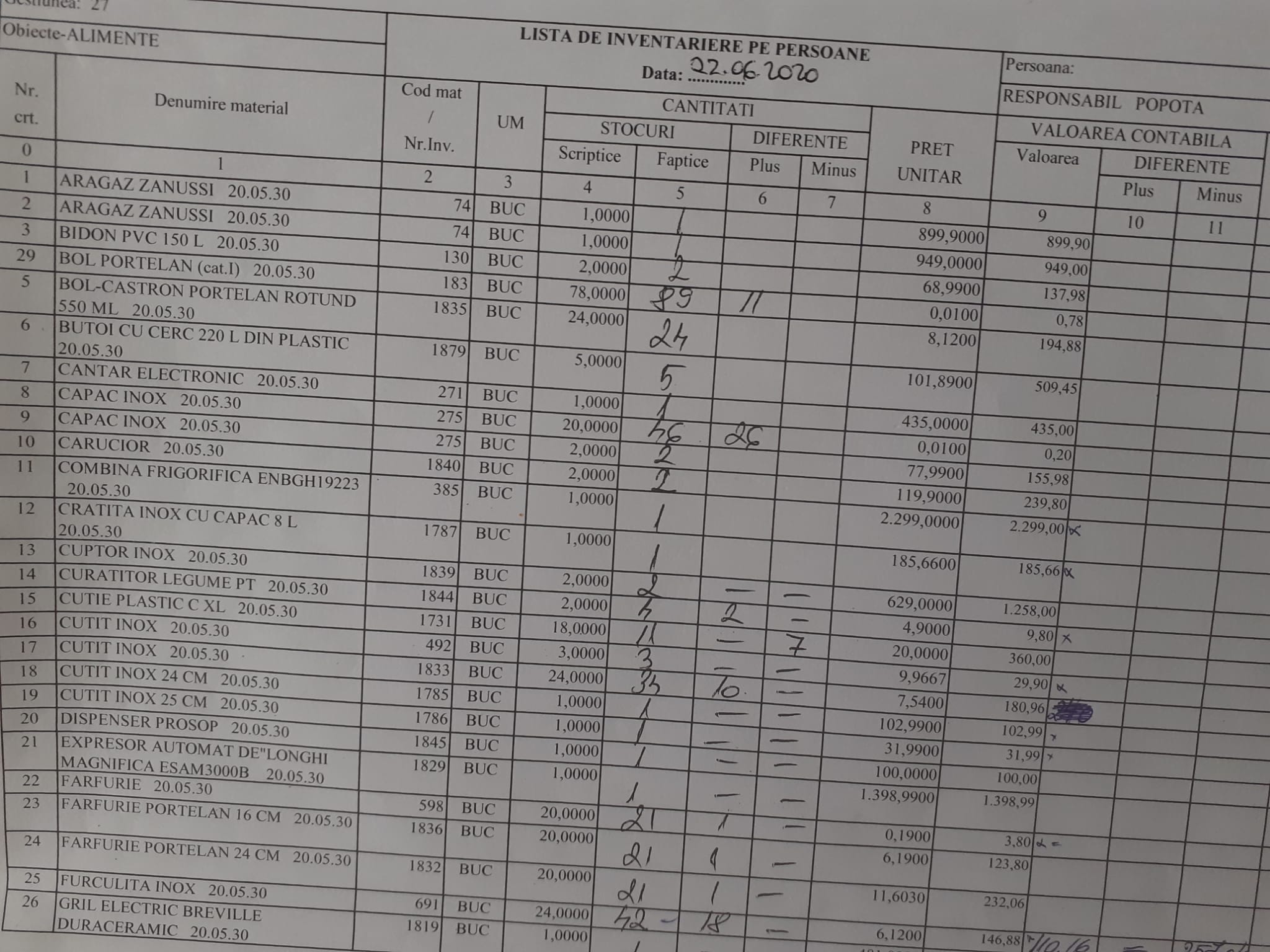 Listele de inventar întocmite de dumneavoastră au data întocmirii 22.06.2020 , deși confom documentelor dvs., inventarierea a început în data 06.04.2020. De ce? Mafioții știu de ce! Simplu ca să se poată fura și acoperi furturile!!!