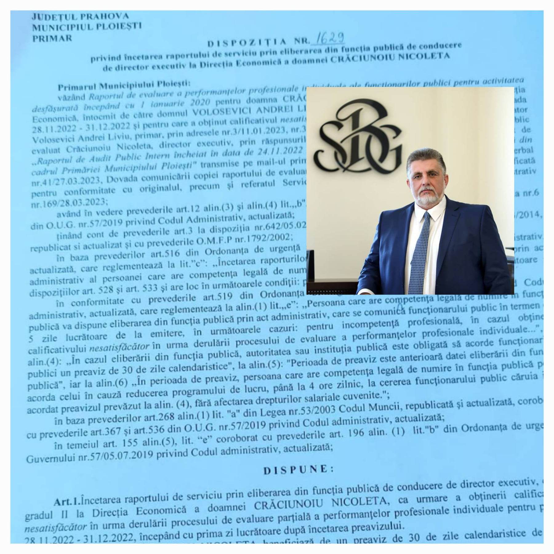 O cunosc pe directorul economic Craciunoiu de peste 12 ani. Nu am sa-i reprosez nimic profesional si stiu ca daca a avut uneori atitudini considerate inflexibile a facut-o pentru a apara Ploiestiul de rele. De multe ori a pus degetul pe problema si ne-a deschis ochii in domenii deosebit de delicate cum sunt finantele si bugetul localitatii. Sa arunci cu pietre intr-un asemenea om este, in primul rand, un gest de iresponabilitate din partea titularului deciziei de concediere. Iar domnul Volosevici da din nou dovada ca prezenta sa in fruntea Ploiestiului este un accident al istoriei pe care il regreta chiar si cei mai devotati sustinatori ai sai. Primarie pe persoana fizica, ostilizarea tuturor relatiilor, jocuri urate pe sub masa impotriva Ploiestiului. Pacat ca a ratat 4 ani pentru Ploiesti. Daca gestul domniei sale este sau nu este infractiune urmeaza sa stabilească organele de urmarire penala. Cert este ca face toate nefacutele pentru ca cel care plateste este Ploiestiul, nu el din banii de buzunar. Asta este…. deocamdata!”. Vom reveni. Ca o paranteza, pentru noi, acest „gingasssssss” edil este un fel de Ludovic al XIV-lea, chiar daca, inca, pare Ludovic IV! (Cerasela N.).