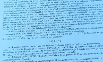 În data de 20.12.2022, Direcția Economică a primit de la Direcția Administrație Publică, Juridic–Contencios, Achiziții Publice, Contracte, Serviciul Juridic– Contencios, Contracte, Adresa nr. 2055/20.12.2022, prin care se aduce la cunoștință faptul că: „pe rolul Tribunalului Prahova se află înregistrat Dosarul nr.2790/105/2022 având ca obiect anulare act administrativ H.C.L. nr.60/10.02.2022. În data de 14.11.2022 instanța s-a pronunţat în sensul că a dispus anularea în parte a H.C.L. nr.60/10.02.2022, cu privire la data intrării în vigoare a actului administrativ, respectiv 01.02.2022.”