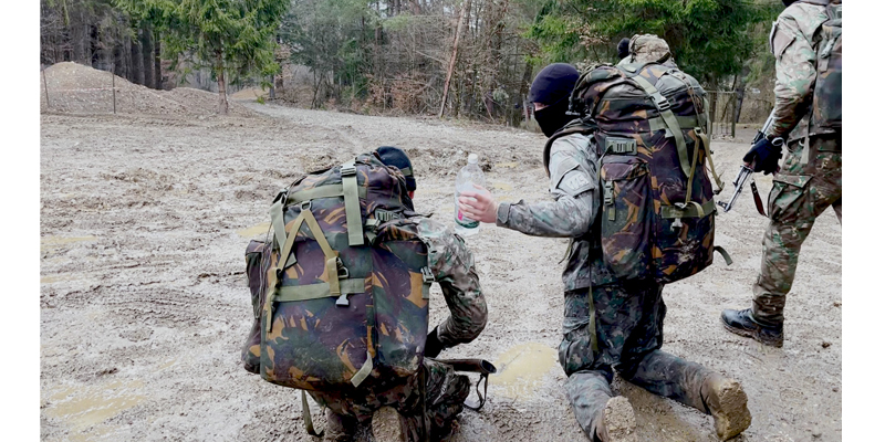 „Cine crede că nu are greutatea necesară are trei minute la dispoziție să completeze cu pietre”. Nimeni nu mișcă, pentru că toți și-au pregătit echipamentul dinainte. De teama eliminării, unii au și 30 de kilograme în spate; în plus, armamentul individual și apa pentru hidratare.