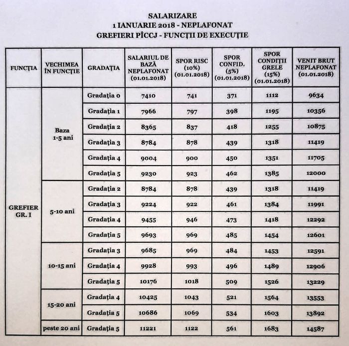 Iata mai jos salariile grefierilor din PICCJ: