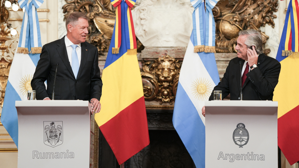 Președintele României, Klaus Iohannis, a susținut marți, 25 aprilie 2023, la Palatul Prezidențial Casa Rosada din Buenos Aires, Republica Argentina, declarații de presă comune cu Președintele Republicii Argentina, Alberto Fernández