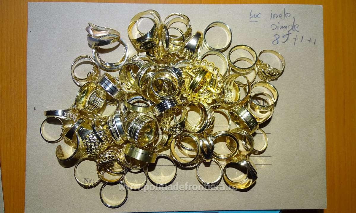 Cu această ocazie, colegii noștri, au descoperit în urma controlului efectuat asupra mijlocului de transport, într-un loc special amenajat în compartimentul motor, cinci pachete ce conțineau mai multe bijuterii din metal de culoare galbenă și albă, presupus a fi aur.