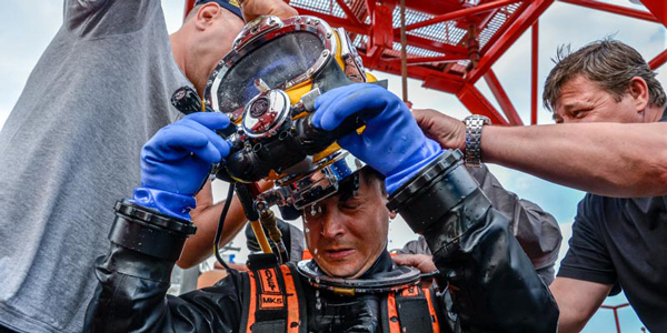 A fost admis, fiind repartizat la nave, la o navă de scafandri. Văzându-i pe băieți cum veneau şi plecau de la scufundări, mereu cu butelia și cu toate dispozitivele specifice, am fost determinat să încerc să fac și eu cursul de scafandri. La primul contact cu apa, ca scafandru, a resimţit un sentiment unic, specific primei întâlniri cu un alt mediu. La prima scufundare făcută în port, vizibilitatea era foarte bună, vedeam cum peștii înotau liniştiţi pe lângă noi, deloc speriaţi de prezenţa noastră, pentru că eram în mediul lor, noi eram intruşii. Nu e un sentiment pe care poți să-l descrii în cuvinte. De teamă nu prea este loc în această meserie, pentru că dacă aceasta îţi dă târcoale, atunci cel mai mare inamic al nostru putem deveni chiar noi înșine. Nu este un mediu în care să greşeşti, pentru că o singură eroare poate fi fatală.
