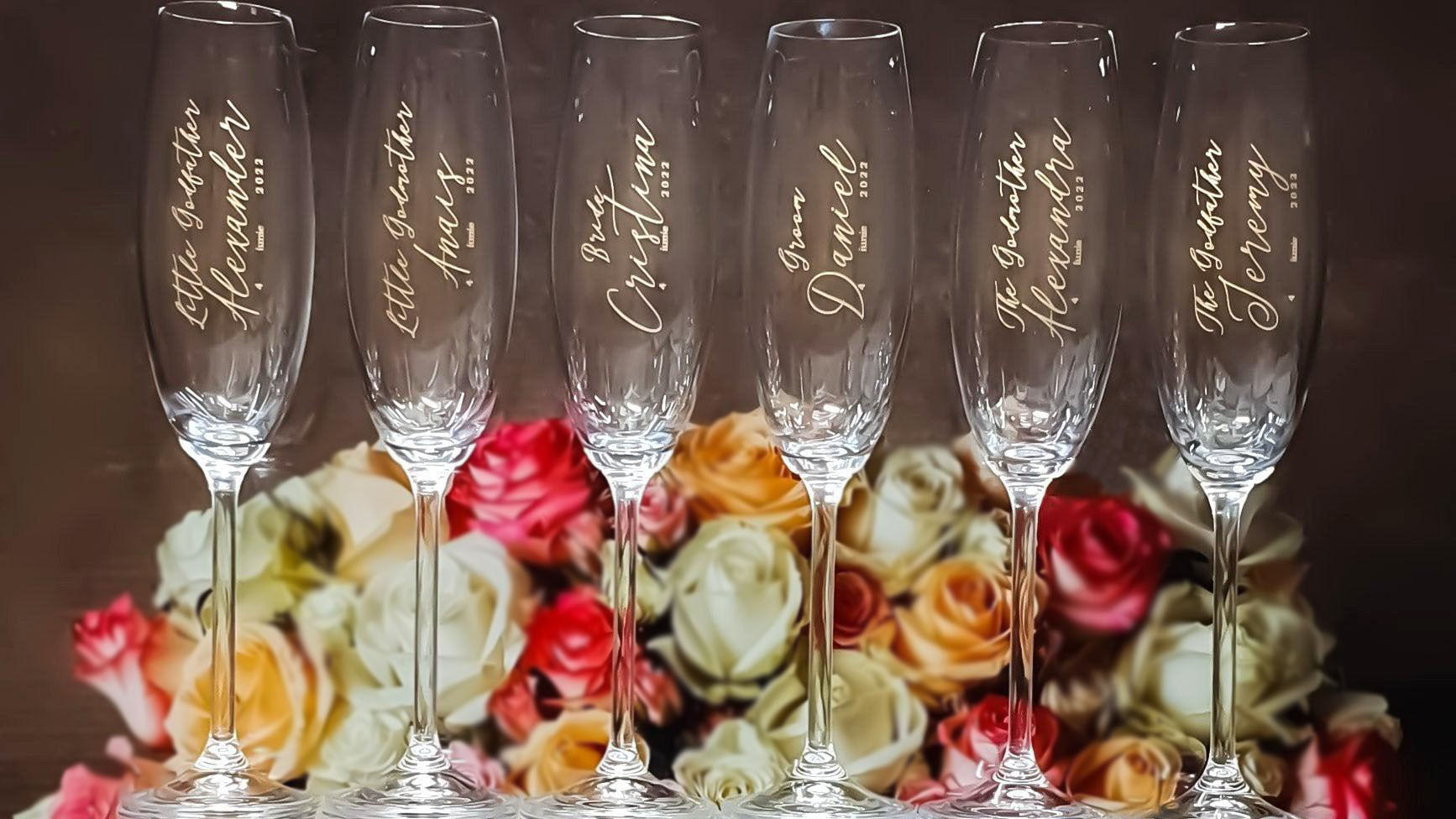 Idei pentru a vă personaliza paharele de șampanie gravate