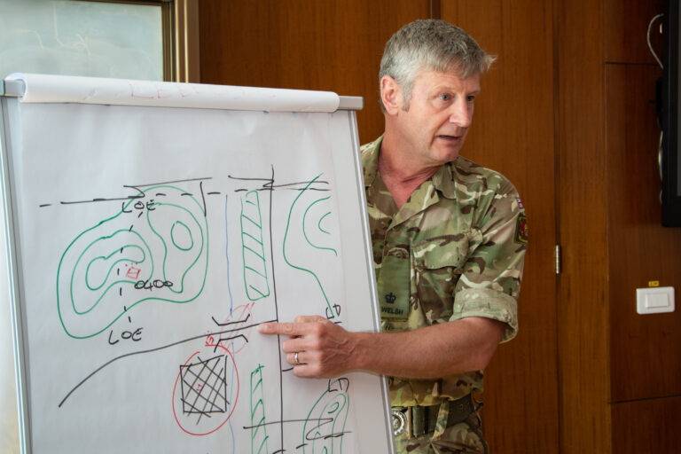 Un alt curs a fost susținut de maiorul britanic Peter White. Le-am vorbit despre procesul de analiză și planificare militară. Am avut ocazia să le explic studenților felul în care Marea Britanie realizează planificarea militară, cum luăm o misiune operațională și o transformăm într-o activitate tactică, explică instructorul.